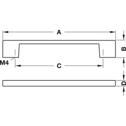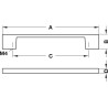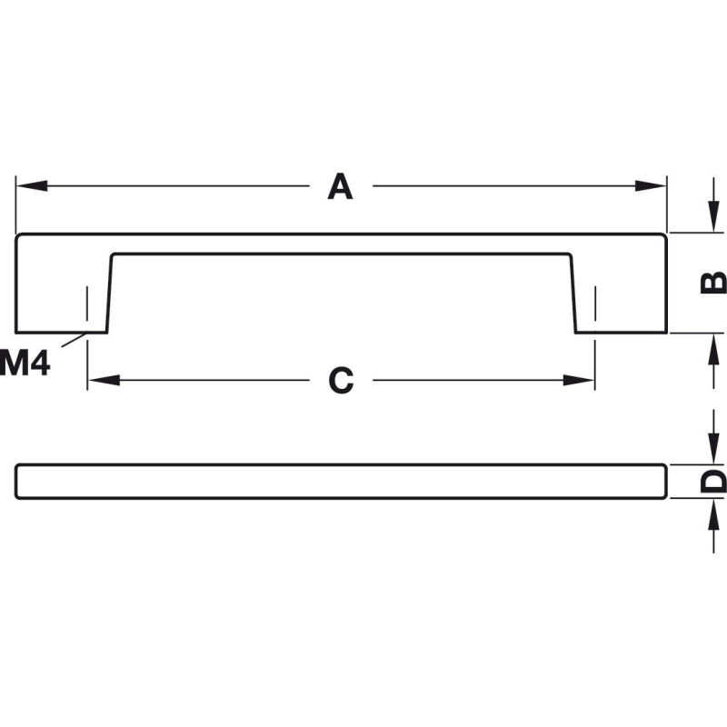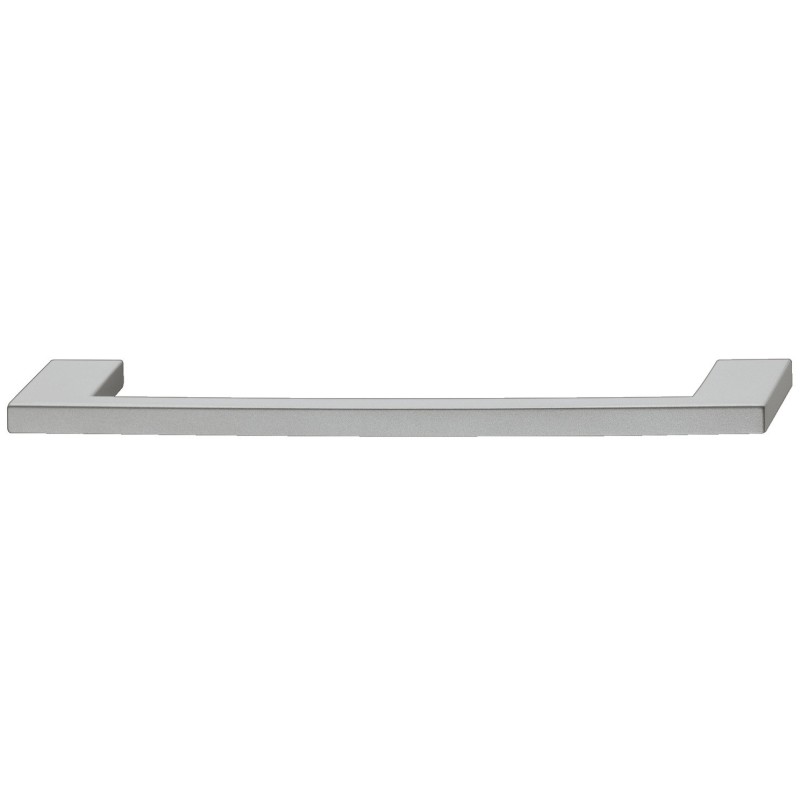 Tidless bøjlegrep i forkrommet matt sinklegering. Grepet har et enkelt og tidløst design med en flat kantet front og brede firkantede sokler.