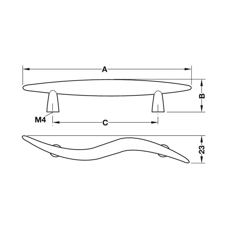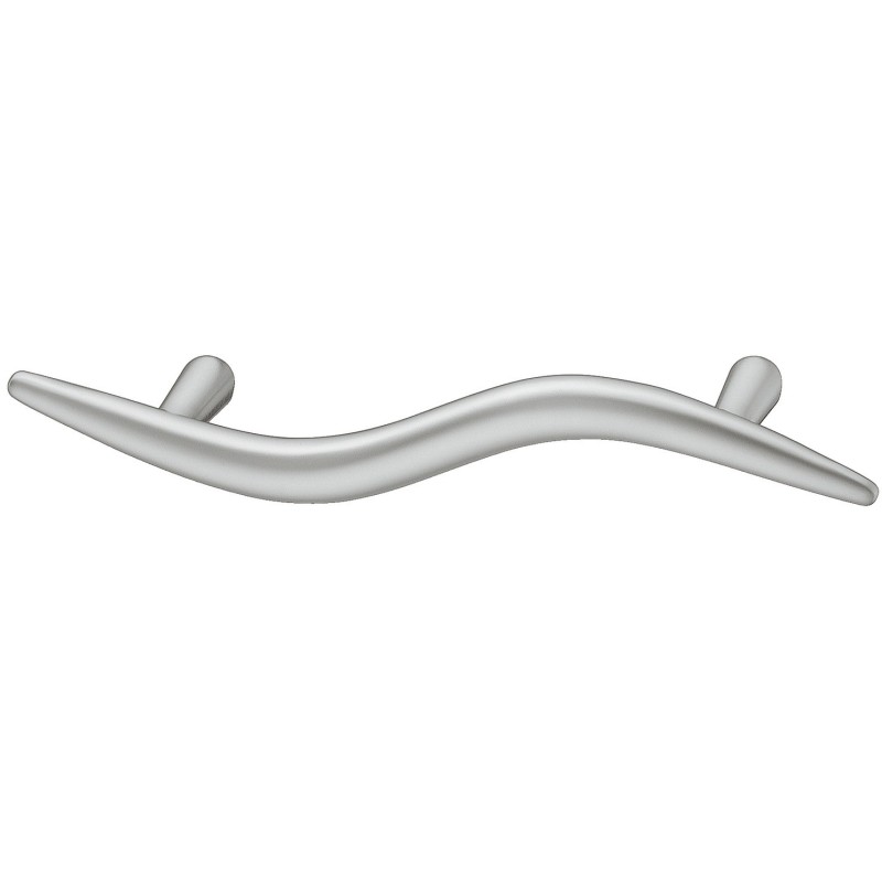 Deilig billig grep i forkrommet matt zinklegering. Grepet danner en liten bølge på to sokler.