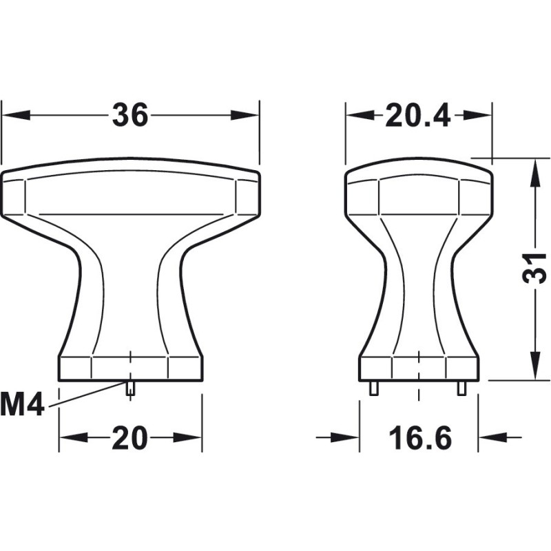 Häfele Design Modell H2185. Moderne og unikt knotthåndtak med kantete hjørner. Håndtaket har et elegant og gammeldags utseende som ville se bra ut på nye møbler for et herskapelig preg.