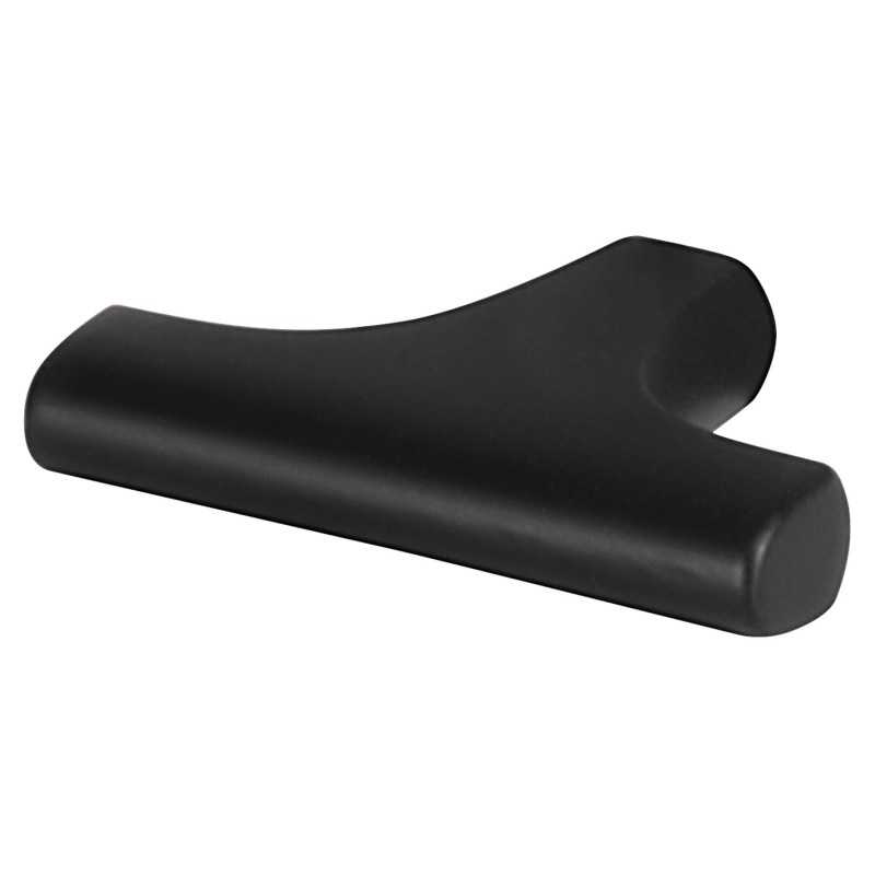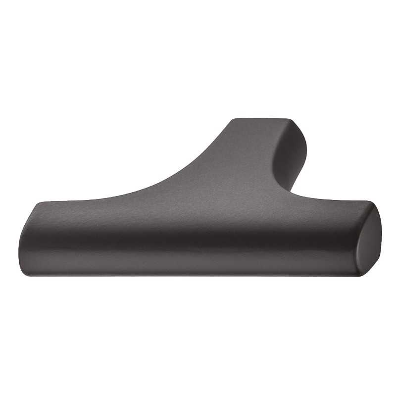 Denne møbelknotten er laget i sinklegering og har en matt sort overflate. Måler: 47 x 33 mm.
